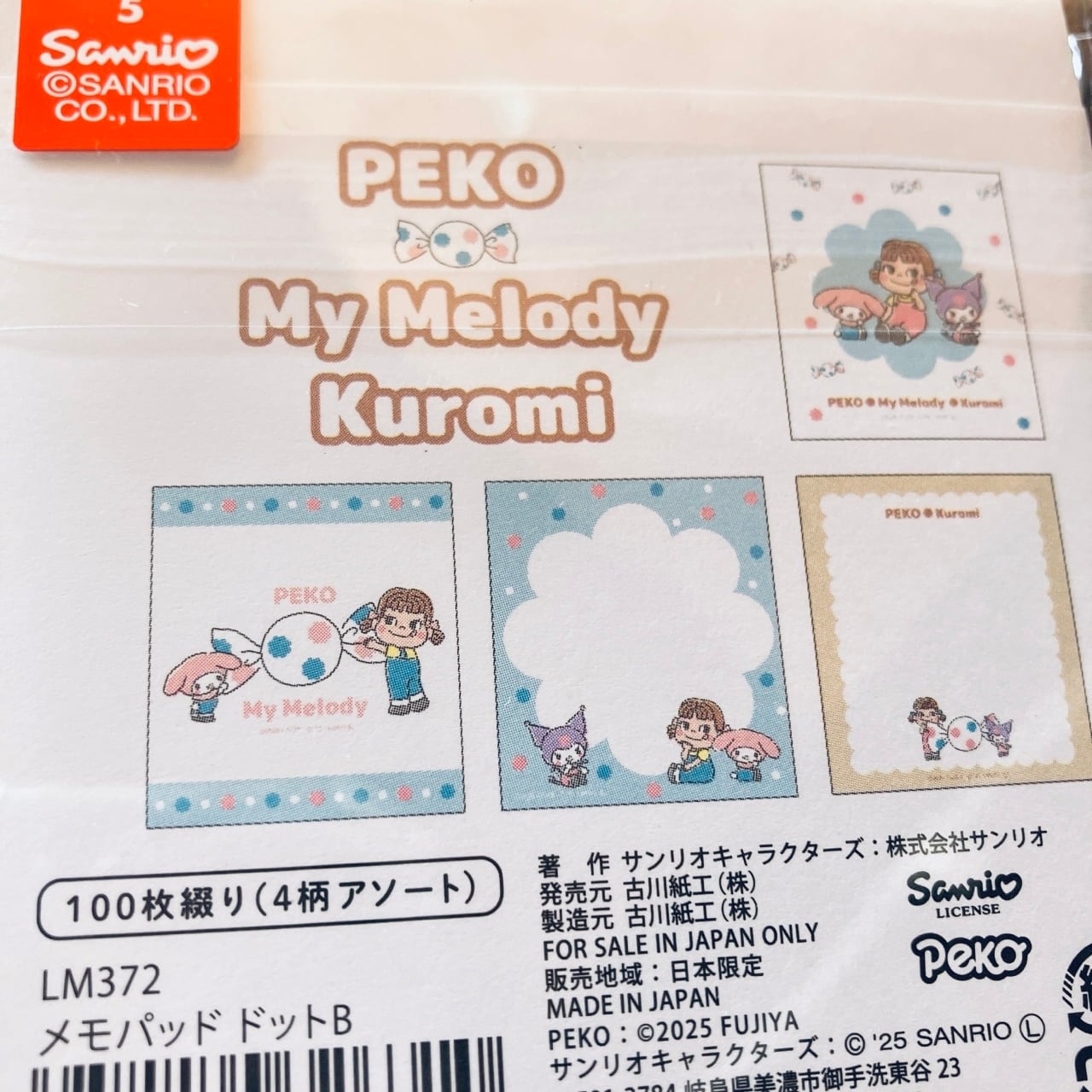 古川紙工 / ペコちゃん / サンリオ / サンリオキャラクターズ / クロミ/マイメロディ/キャンディ/日本製 / コラボ / メモ / メモパッド / ステーショナリー / ギフト / 手帳デコ / 紙雑貨