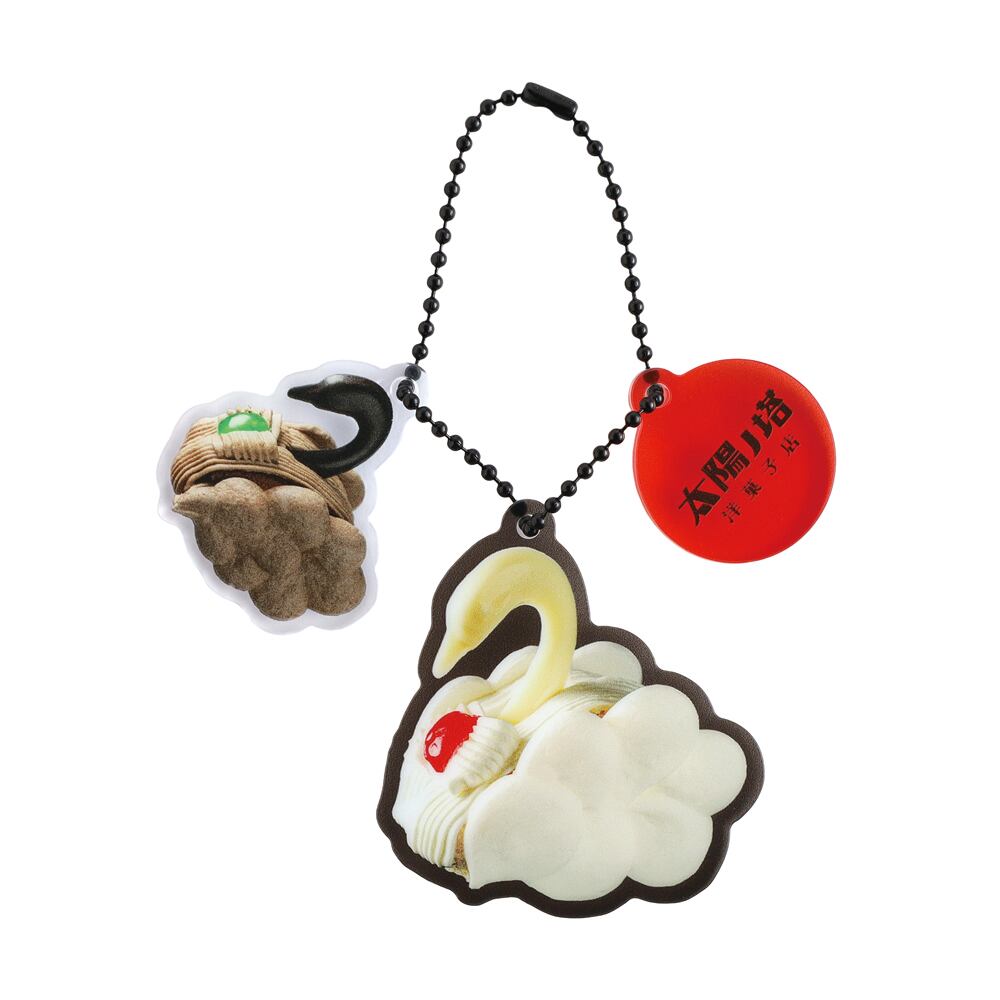 太陽ノ塔洋菓子店で人気のこだわりのケーキや焼き菓子、クリームソーダなどがアクリルキーホルダーになりました。