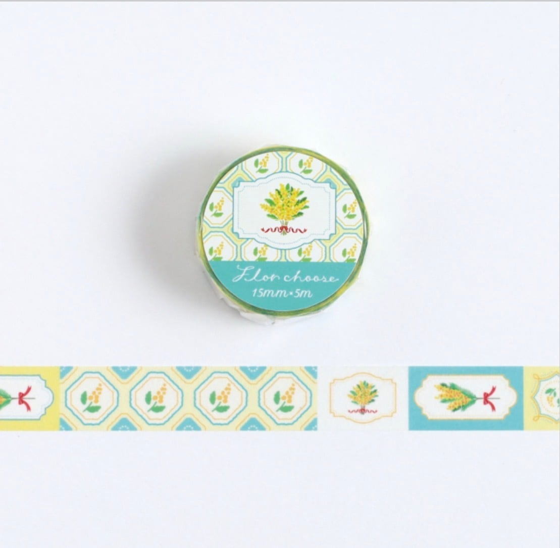 花束とレトロなタイルデザインがかわいいマスキングテープ。