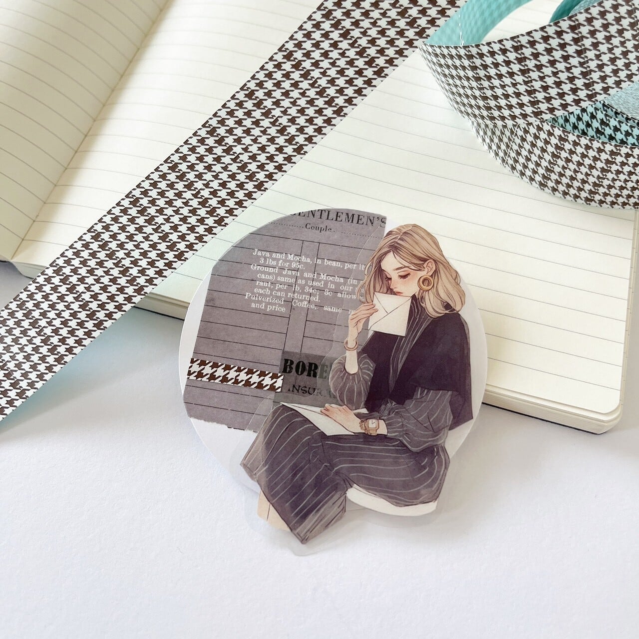 alittlemini 千鳥柄・ブラウン ラベラーシール AL01