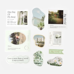 透明素材と透け感のある和紙の異素材フレークシールです。